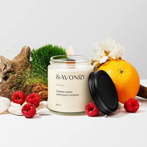 Свечи Savonry изготовлены на растительном соевом воске, который при горении не выделяет вредных веществ. Также этот воск не имеет запаха, легко смешивается с ароматической композицией и полностью передает все тонкости аромата, который при нагревании раскрывается сильнее.