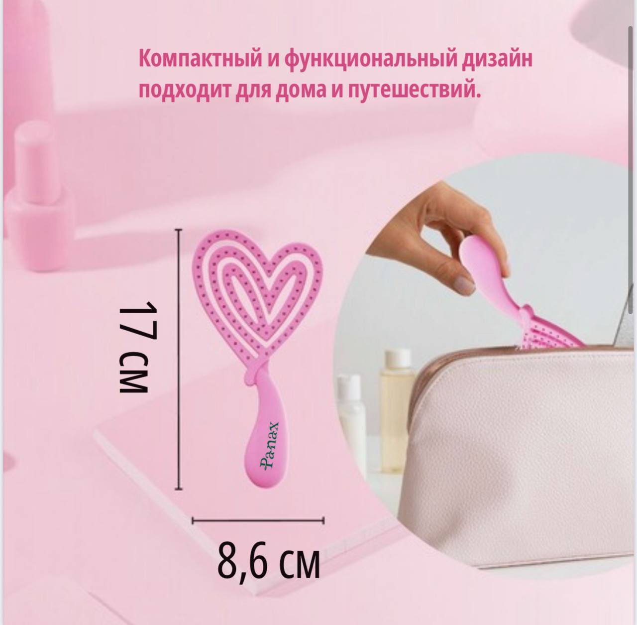 Расческа в форме сердца с эластичными зубчиками и круглыми шариками на конце зубчиков для ощущения приятного массажа и легкого расчесывания.