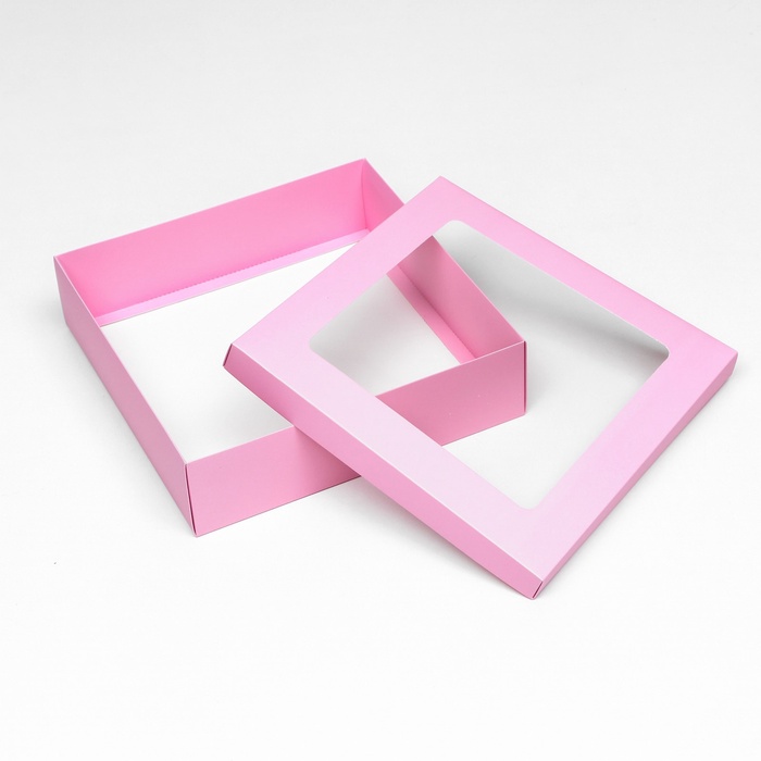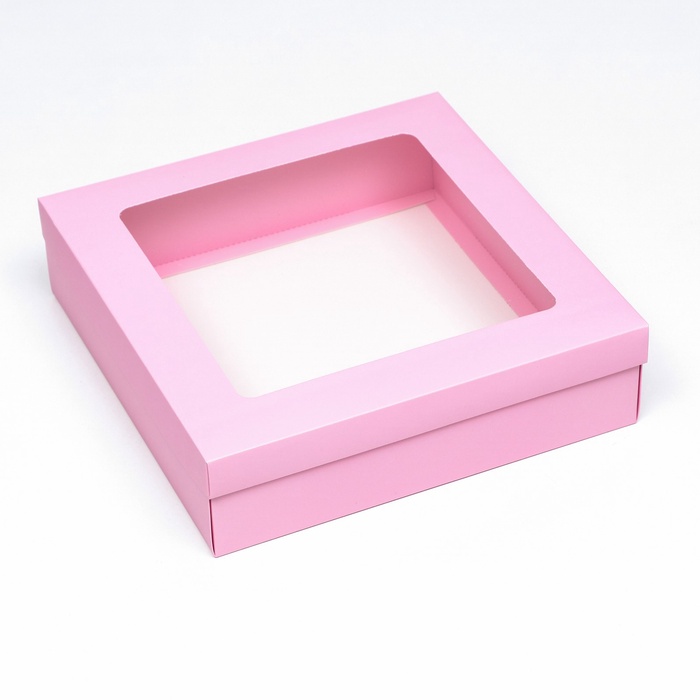 Отзывы о товаре Коробка подарочная квадратная большая с окном розовая