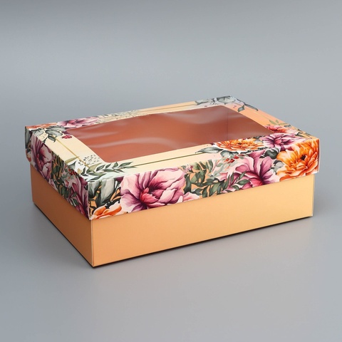 Коробка подарочная с окном Цветочки