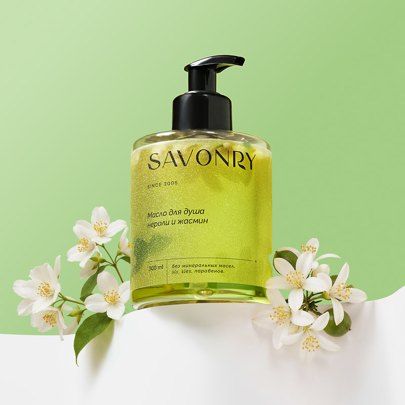 Масло для душа с изысканным цветочным ароматом жасмина и нероли.