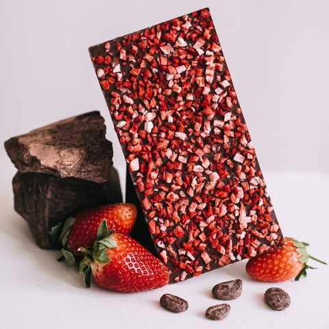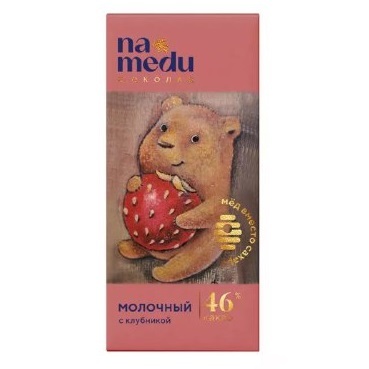 Молочная шоколадка на меду с кусочками сублимированной клубники. Мёд вместо сахара. Чистый состав. Этот шоколад идеально подойдет на подарок самым близким людям.