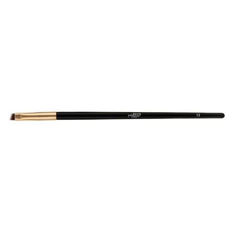 Скошенная кисть № 13 с жестким, при этом упругим ворсом позволяет прорисовать брови, нарисовать стрелки и аккуратно нанести средства для губ. Форма кисти позволяет одновременно и прорисовывать, и заполнять.
