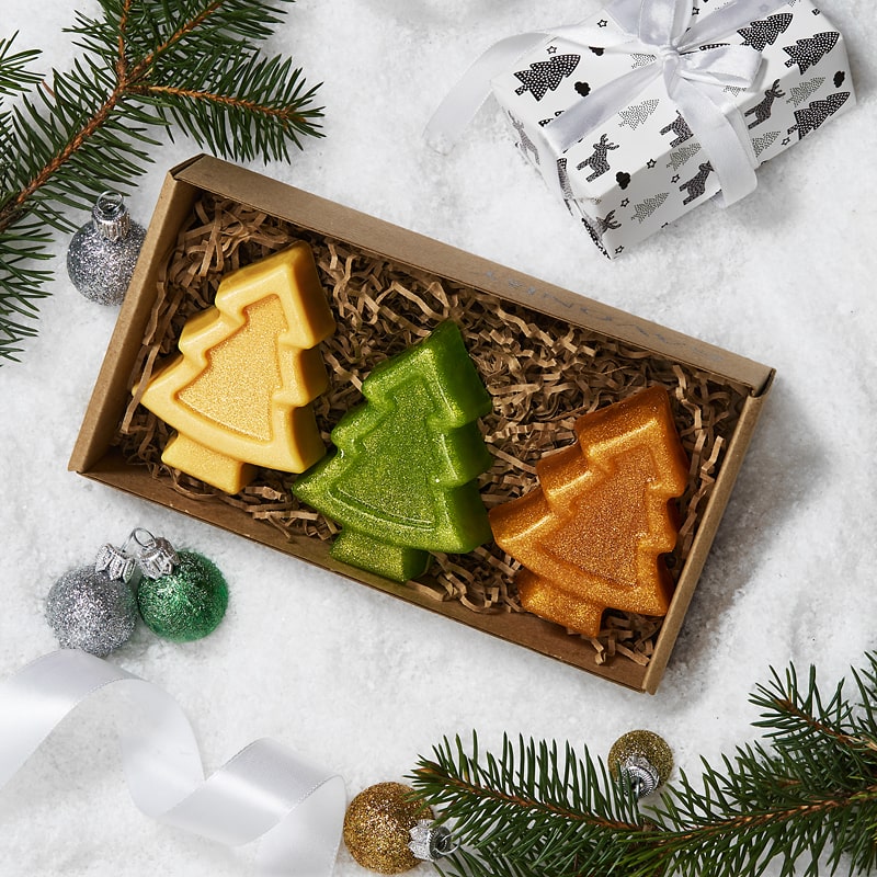 Мыло ёлочки дарят коже ощущение чистоты и нежности, и создают неповторимую праздничную атмосферу, а стильная новогодняя коробка делает набор универсальным готовым подарком для близких и любимых. Подарите мгновения зимнего уюта!