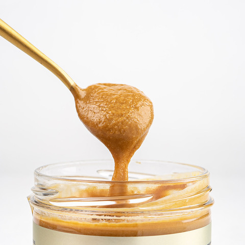 Для приготовления пасты используются отборный арахис легкой обжарки и ароматная кокосовая стружка, которые перетираются на каменных жерновах до нежной консистенции.