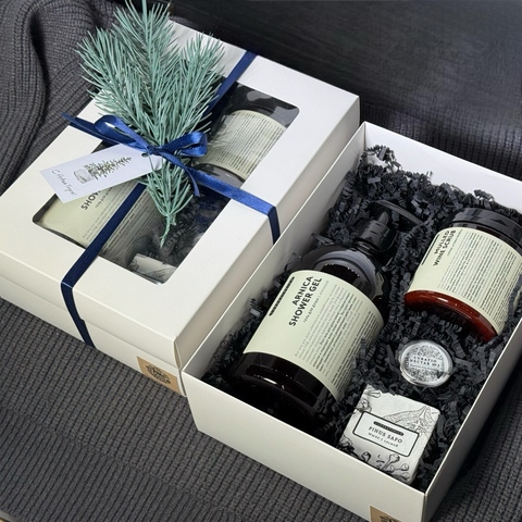 Новогодний набор, заботливо собранный в "Это надо": белая коробка, бумажный наполнитель, лента, новогодняя бирка, украшение в виде большой литой ветки ели (не осыпается)!