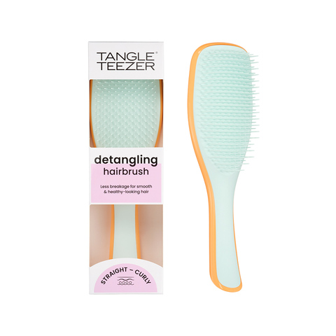 Расческа Tangle Teezer The Ultimate Detangler Ice Blue & Sweet Orange – расческа для ежедневного ухода за прямыми и волнистыми волосами, представлена в контрастном сочетании оранжевого и голубого оттенков.