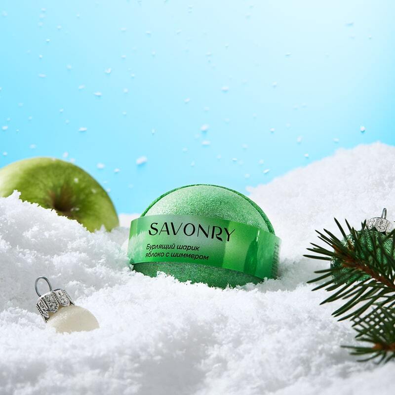 Насладитесь сочной свежестью спелого фрукта с бурлящим шариком Яблоко с шиммером.