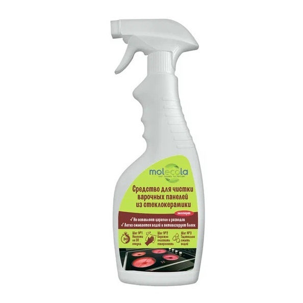 Специализированная форма спрея быстро удаляет жир и другие загрязнения с глянцевой поверности стеклокерамических плит. Отсуствие в составе абразивных веществ помогает полностью очистить поверхность от загрязнения, не повереждая ее.
