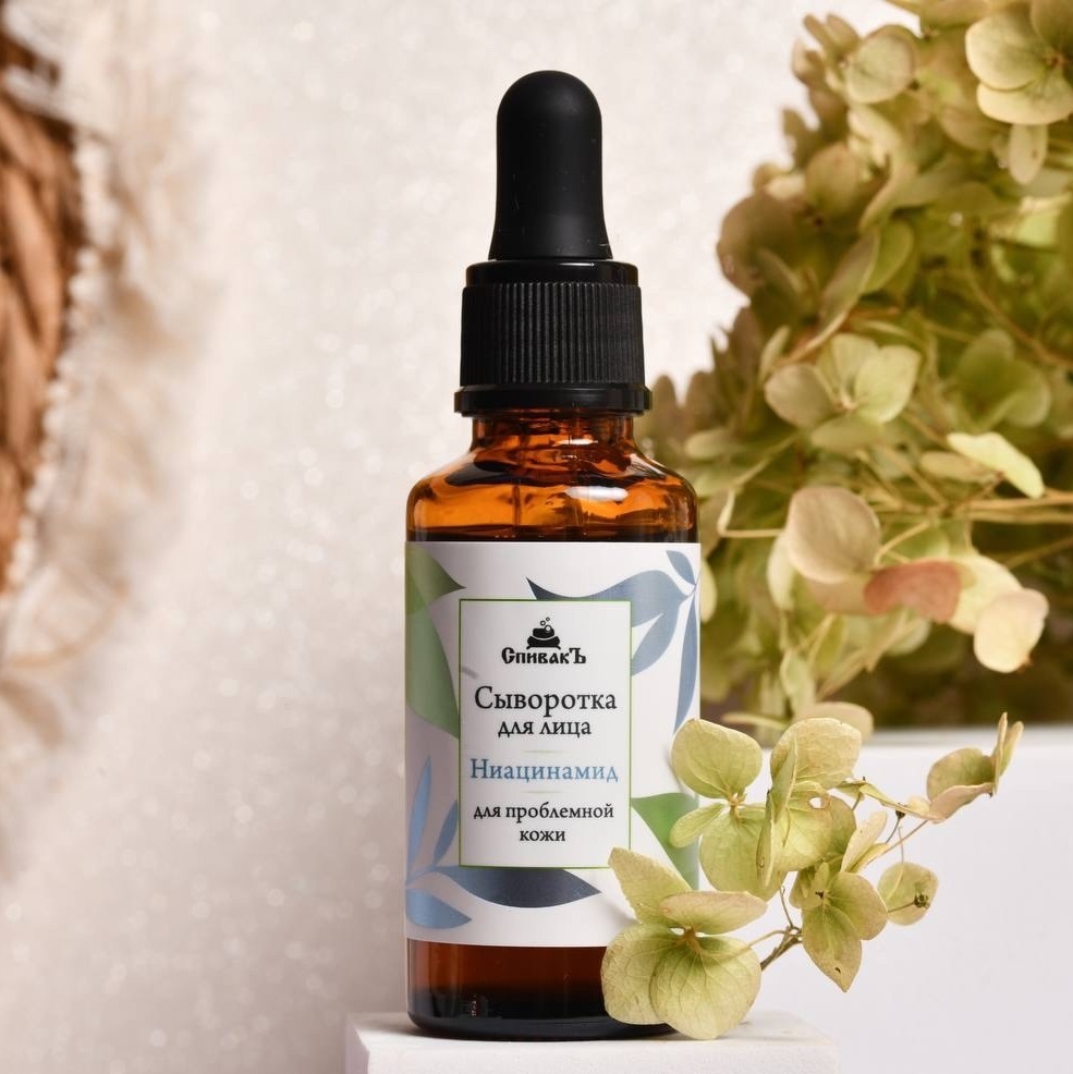 Сыворотка Ниацинамид способствует восстановлению гидролипидного баланса, убирает сухость и воспаления. Кроме того сыворотка подойдет для людей с проблемной кожей, т. к. витамин В3 регулирует выработку себума и обладает очень широким спектром действия: сужает поры, оказывает противовоспалительный эффект, улучшает цвет лица.
